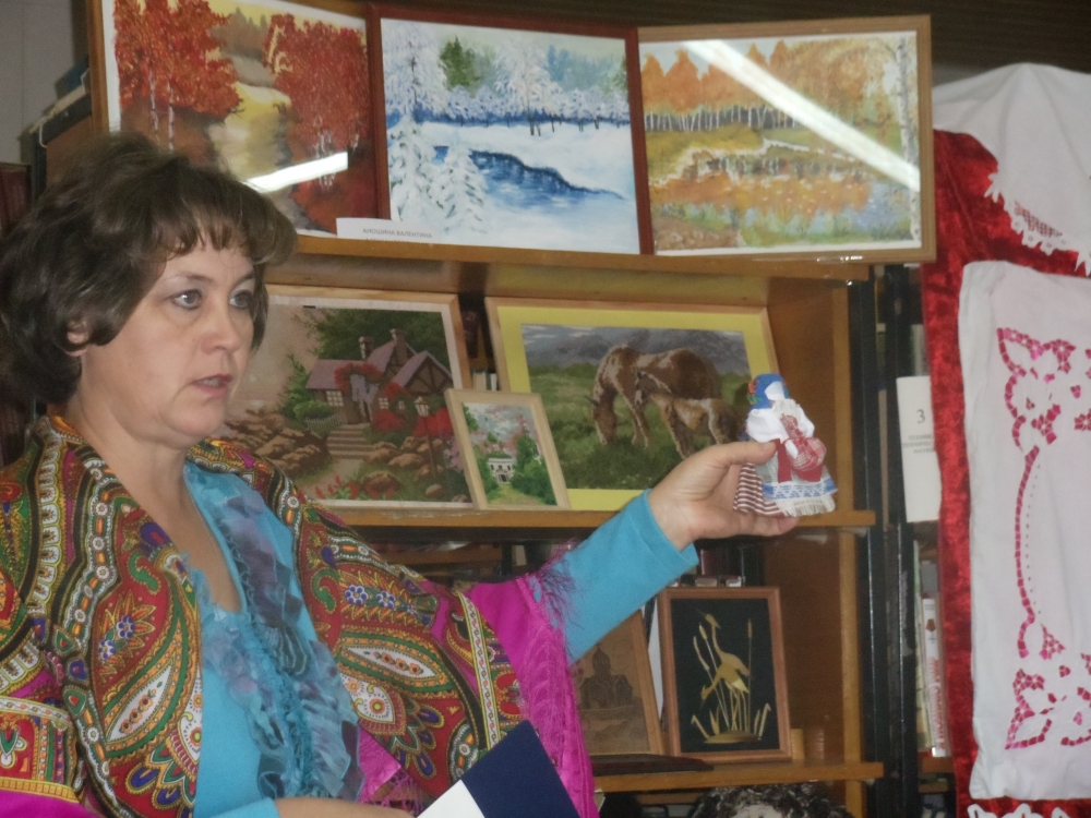 В середине октября в Шумашской сельской библиотеке прошла литературно-музыкальная композиция "Свой дом украшу я сама" к Всемирному дню сельских женщин. Была оформлена красочная выставка декоративно-прикладного творчества сельчанок разных возрастов от учениц начальных классов до бабушек.Это живопись,вышивка крестом,гладью,бисером,вя
